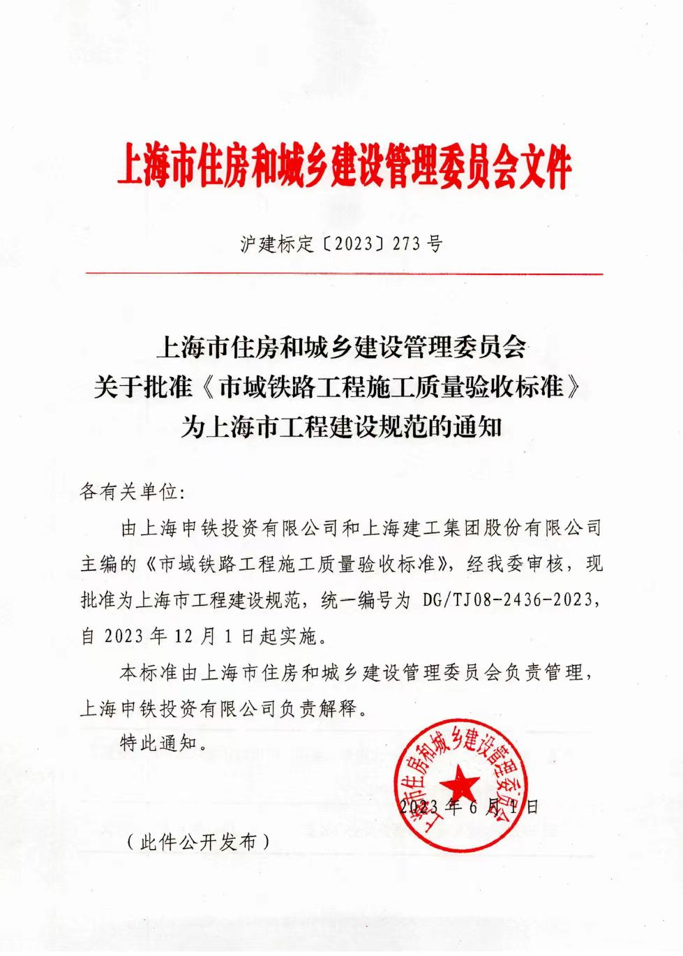 《上海市市域铁路工程施工质量验收标准(土建分册)》上海申铁,2020