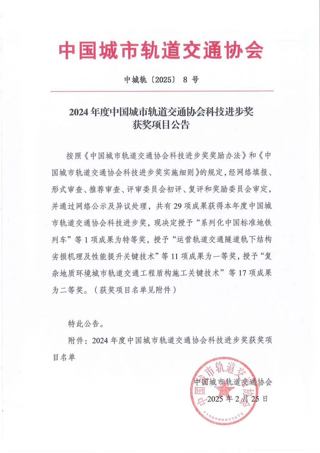 近日,中国城市轨道交通协会公布了“2024年度中国城市轨道交通协会科技进步奖”获奖名单。天佑咨询参建的武汉光谷悬挂式单轨工程成套技术及应用荣膺科技进步一等奖。此次获奖是对天佑咨询在光谷空轨项目专业创新能力的认可,充分突显了天佑咨询在轨道交通建设管理领域的实力。