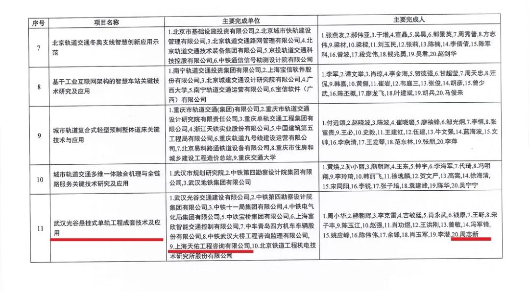 天佑参与的光谷空轨项目获中轨协科技进步一等奖!